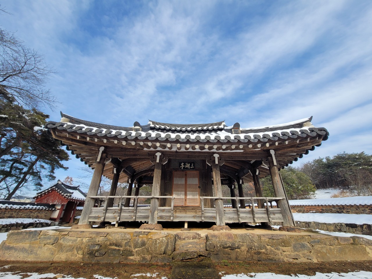 삼호정은 옥천조씨 3형제분[인호(현동),덕호(후동),석호(석동)]의 호를 호(湖)가 셋이어서 지었다고 한다. 조공 형제 삼인이 여기 은거하여 도를 구하면서 백씨 상호는 인천강으서 심신을 세쇄(洗灑)하고 중씨 중호는 덕천강에서 조석으로 수조 했으며 계시 하호는 석천강에서 관개함이라 하고 작은 정자를 호(湖)의 위에 지어 삼호라 편객하고는 월석 화조에 꽃다운 물가를 따라 소일하고 술통과 시로 이륜을 펴고 마음껏 즐기니 사람은 티끌로 더럽힘이 없고 호는 찌꺼기로 더럽힘이 없는 청호로는 이 분들이 없어서는 안되겠고 정은 이 호가 없어서는 안되겠더라. 지취를 기록하여 서를 하고 시를 서술하였다.