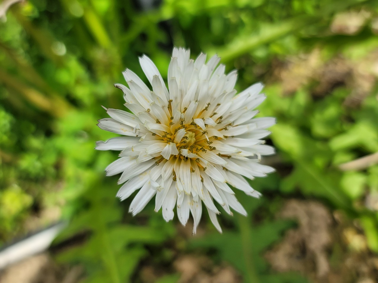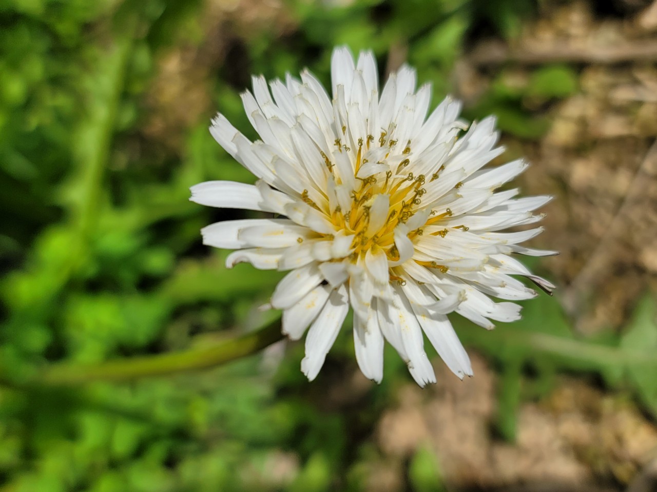 4~6월에 혀처럼 내민 흰 꽃이 피는데 처음에는 잎보다 짧은 꽃줄기가 1개 또는 여러 개 나와 그 끝에 두상화가 1개씩 하늘을 향해 달린다. 두상화는 혀꽃뿐이다. 두상화 밑에는 털이 빽빽하게 난다. 꽃이 피고 열매가 맺힐 때쯤 꽃줄기는 30cm 정도로 자라 잎보다 훨씬 길어지며 속이 비어 있다. 꽃차례받침은 연한 녹색이다. 꽃차례받침 조각은 끝에 돌기와 더불어 털이 있으며 자줏빛이 돈다.