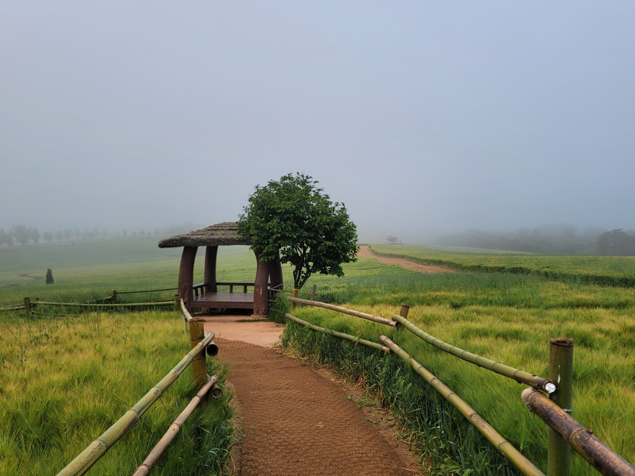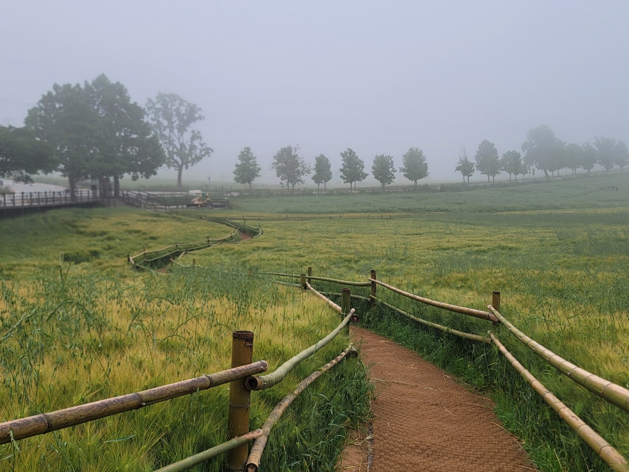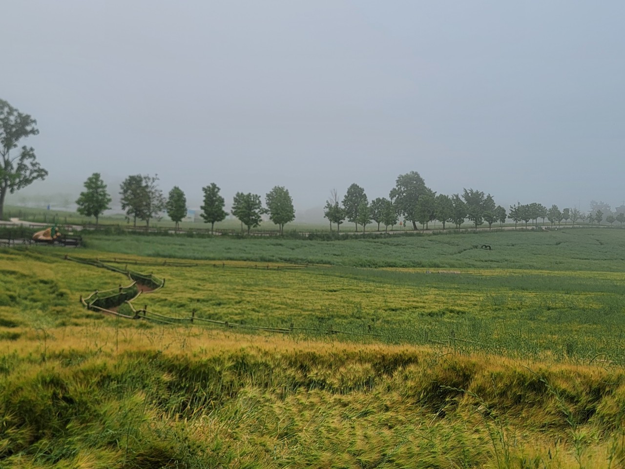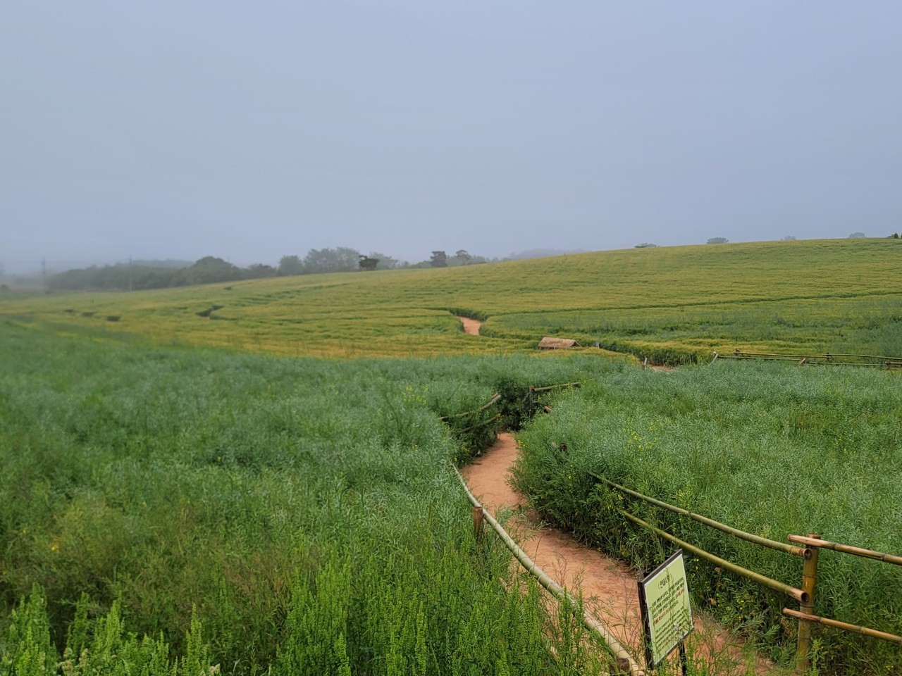 전북 고창군 공음면 학원농장길 158-65월 22일 06시 청보리밭 모습이며,청보리는 일부 쓰러진 것도 있으나 이삭이 조금씩 익어가고유채꽃은 지고 열매가 익어 가고 있습니다.