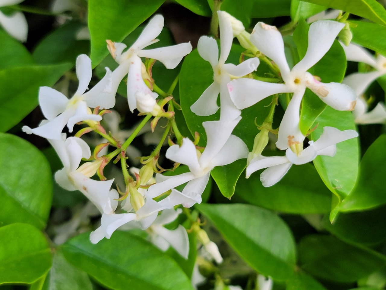 학자스민 꽃봉오리가 진한 분홍색이라 핑크 재스민(Pink jasmine)이라고도 한다.