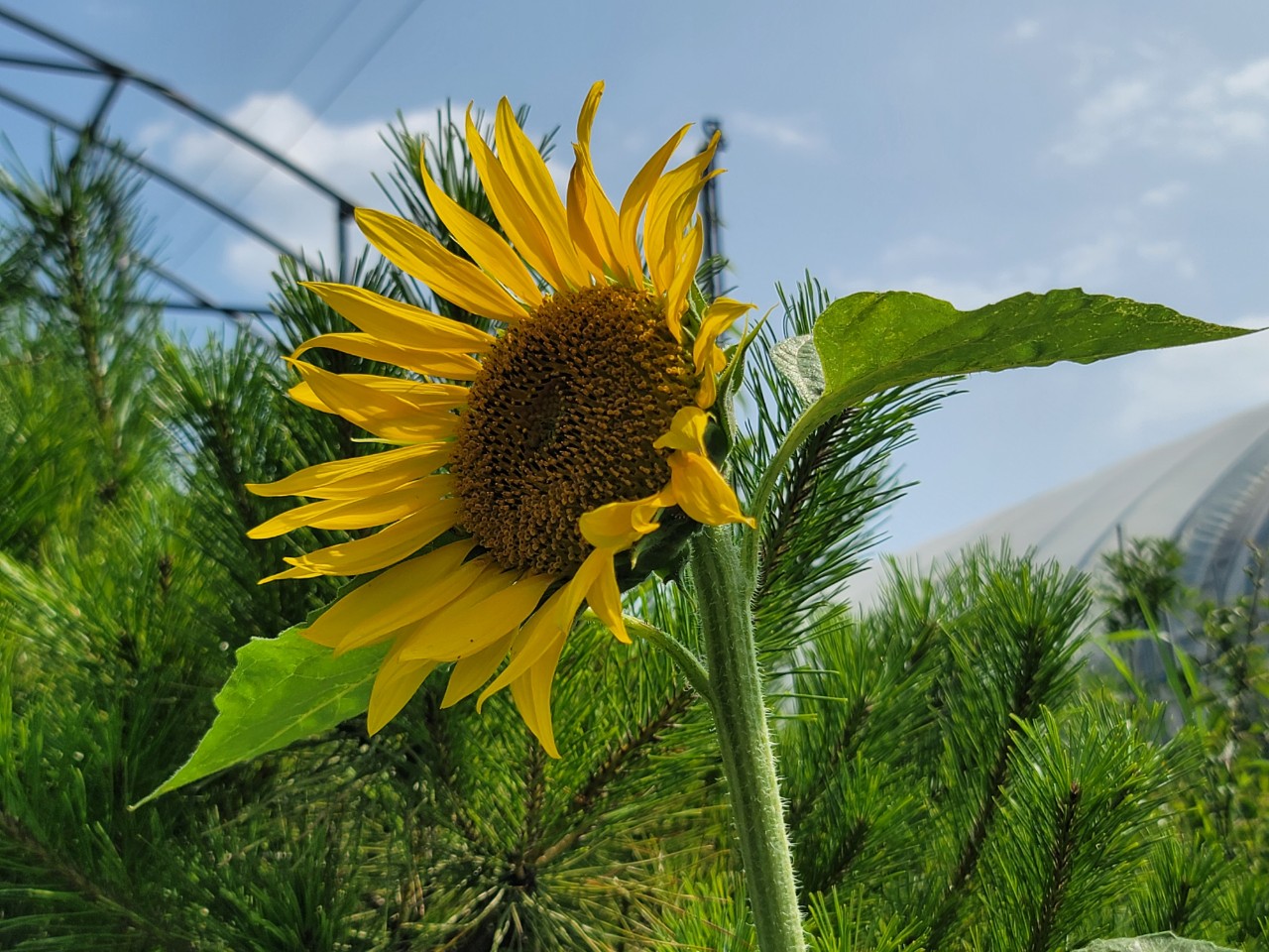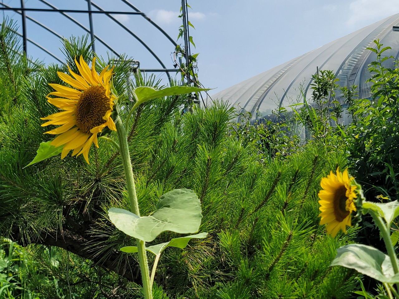 동생집 앞 언덕에 심어놓은 해바라기중 두그루가 피어 있어...