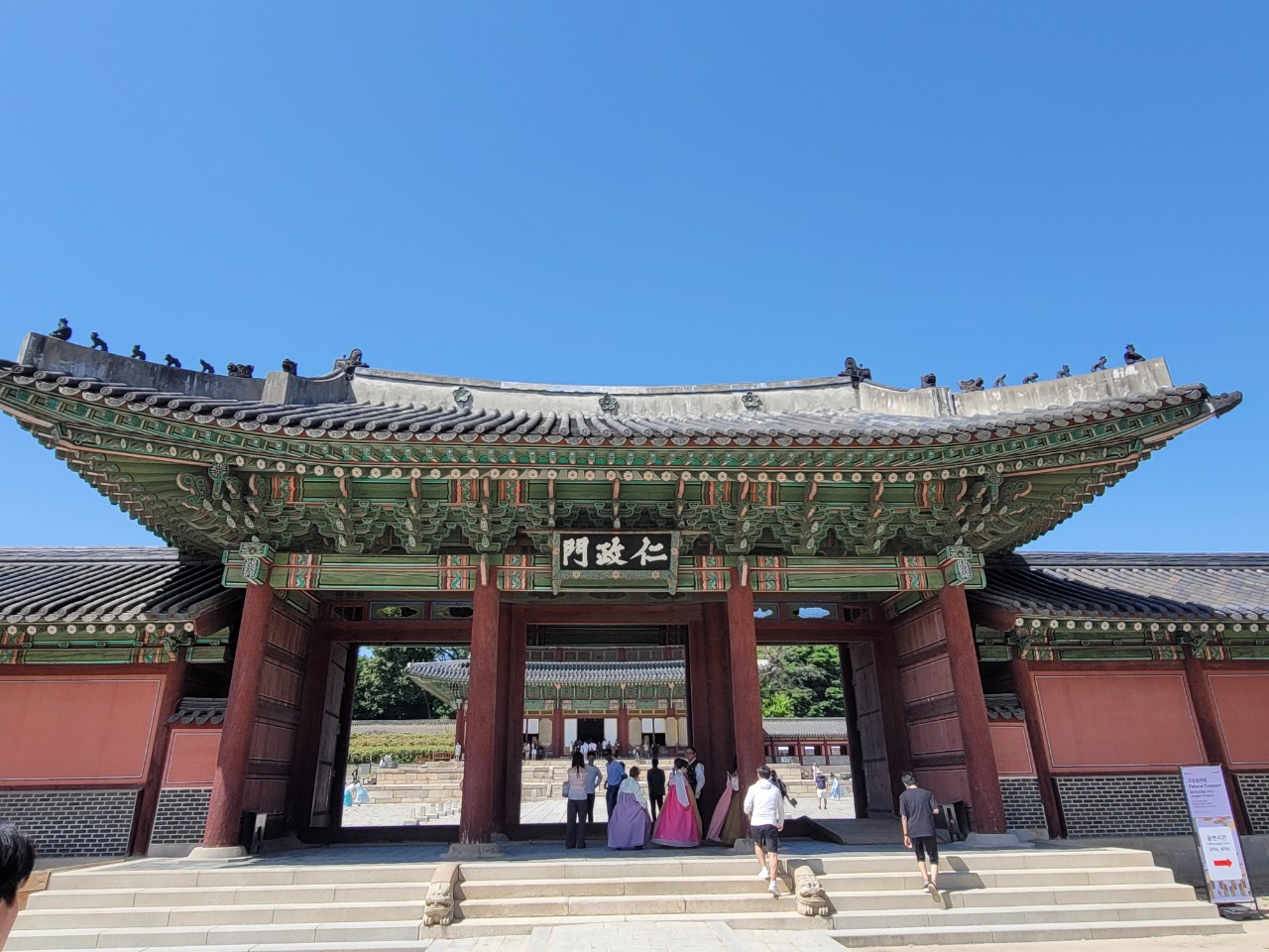 인정문은 정전의 정문이며 그 양쪽에 있는 월랑은 'ㄷ'자형으로 인정전을 감싸고 있다.